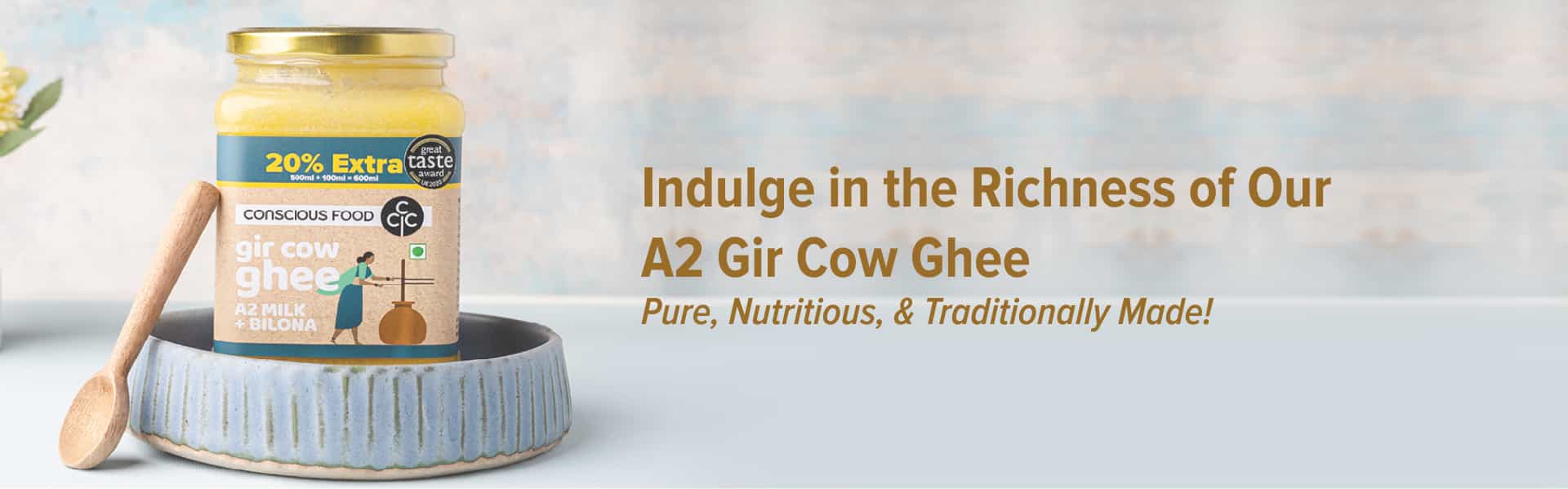 A2 Cow Ghee is the superior ghee which is delicious in taste. A2 Cow Ghee when consumed daily, can improve your digestion and heart health. A2 Cow Ghee is gluten-free, healthy, easy to digest, and boosts your immunity. Moreover, high smoke point ensures that you can use it in almost all food preparations.