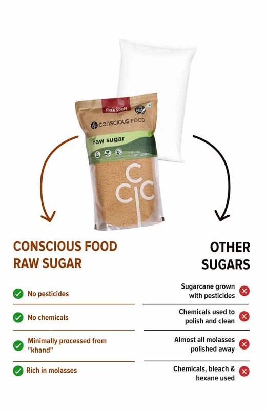 Khandsari sugar is considered a healthier option compared to other processed sugars due to its minimal chemical treatments, which allows it to retain its natural properties and trace minerals such as phosphorus, calcium, and iron. Additionally, khandsari sugar is known to be beneficial for digestion because it contains a high fiber content. Having said this, khandsari sugar IS still sugar and should be consumed in moderation.